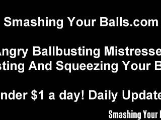 Femdom Mistress Kicks and Humiliates Sub's Little Balls to Dust