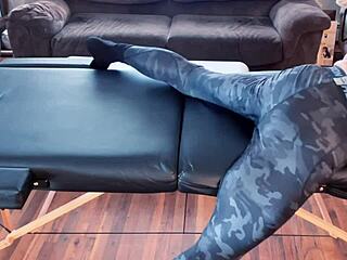 stretching in tight compression pants on the massage table, hd vibes 😏💪
