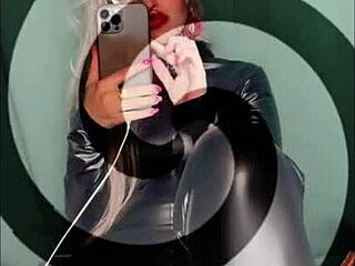 Hot Colleague In Leather Pants Teases Her Fat Cameltoe At Work