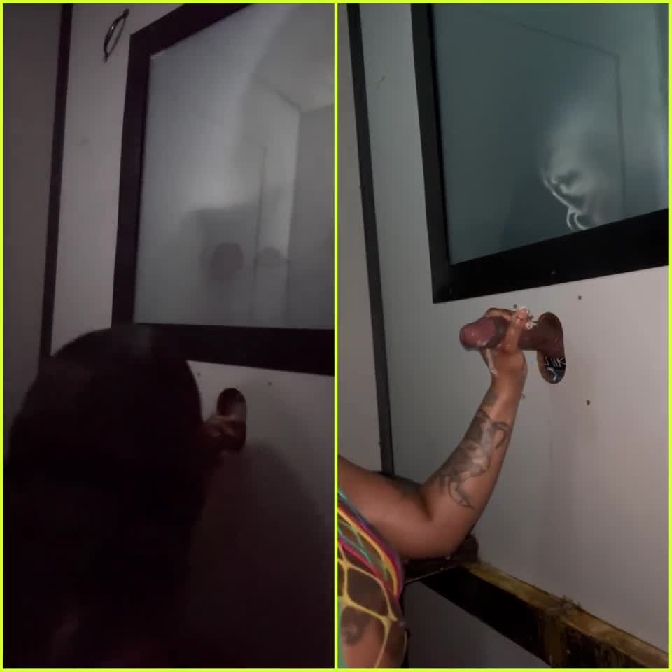 Fucking Pristine Edge's Shaved Pussy Through Gloryhole With Big Black Cock And Deepthroat Action In Lingerie
