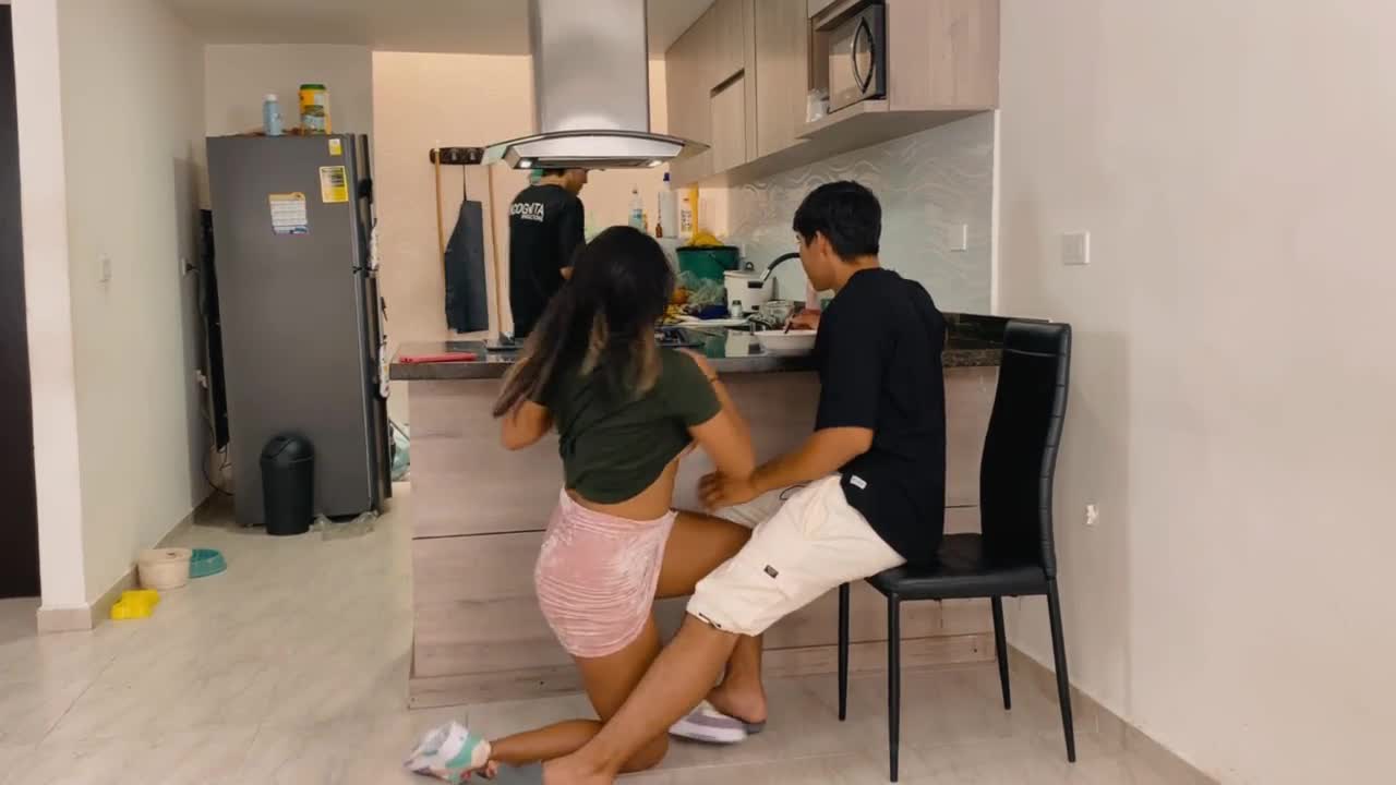 My stepbrother fucks me roughly in front of his girlfriend, creampie in my petite pussy.